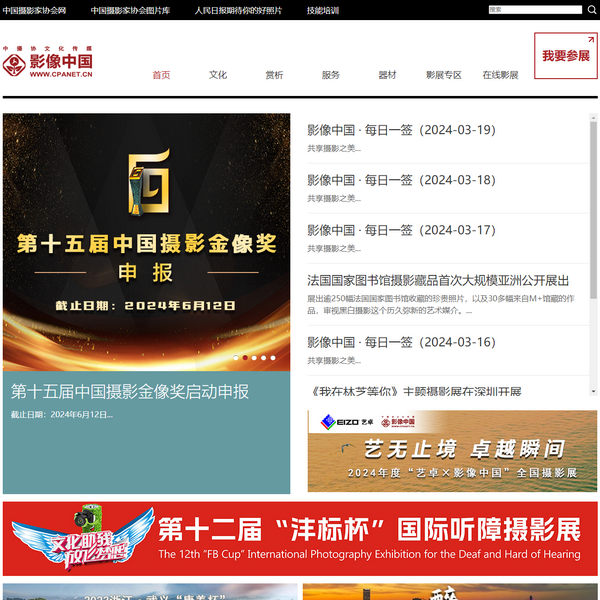影像中國(guó)網(wǎng)(http://www.cpanet.cn/)已被三體網(wǎng)址大全收錄在網(wǎng)址百科信息庫中,所在分類目錄為”其他分類 > 攝影 > 攝影綜合“目錄,百科頁面地址:http://m.dgjclw.com/siteinfo/7617.html。三體網(wǎng)址大全匯聚國(guó)內(nèi)優(yōu)秀網(wǎng)站大全,是提升網(wǎng)站外部鏈接流行度以及影響力的權(quán)威分類目錄及收錄提交入口,歡迎廣大優(yōu)質(zhì)網(wǎng)站提交收錄申請(qǐng)。