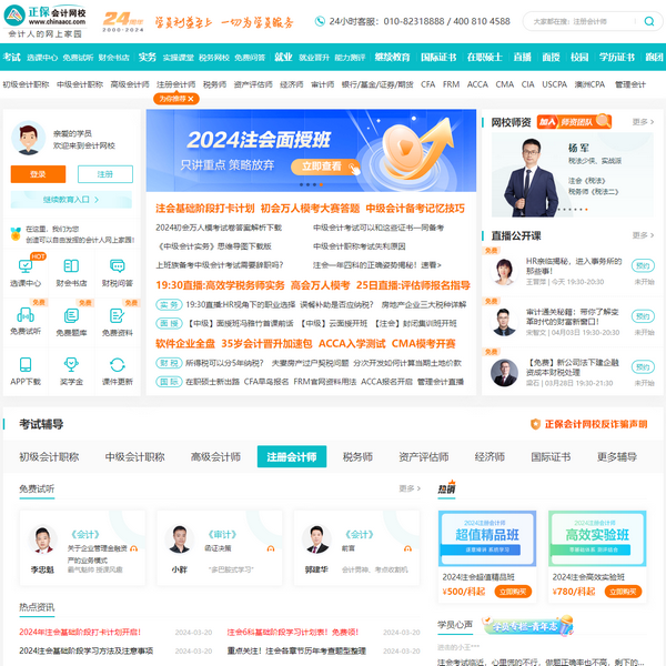 正保會計網校(原中華會計網校)是專業(yè)的會計門戶網站,20余年專注財會職業(yè)培訓品牌!正保會計網校常年從事初級會計職稱考試,中級會計職稱考試,注冊會計師考試(cpa),稅務師,資產評估師,高會,經濟師,會計繼續(xù)教育等各類網上培訓,正保會計網校官網登錄后可免費領取備考資料、試聽課程、每日練題、模擬考試等會計備考服務。正保會計網校20余年助力財會教學,具備豐富會計職稱、注會備考助學經驗。