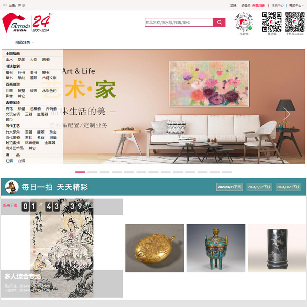 作為藝術(shù)品互聯(lián)網(wǎng)拍賣,的網(wǎng)上拍賣模式,為藝術(shù)品收藏愛好者提供便捷、專業(yè)的古董拍賣、書畫拍賣及拍賣預(yù)展服務(wù),并全面提供藝術(shù)品市場(chǎng)動(dòng)態(tài)、鑒藏指南等信息,致力于打造國(guó)內(nèi)領(lǐng)先的藝術(shù)品線上拍賣交易平臺(tái)。