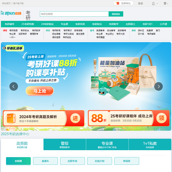 新東方考研在線官網(wǎng)(新東方考研網(wǎng))是知名的考研輔導(dǎo)培訓(xùn)機(jī)構(gòu),擁有16年考研公共課和專業(yè)課的輔導(dǎo)網(wǎng)課經(jīng)驗(yàn),以及考研報(bào)考信息和復(fù)習(xí)資料。