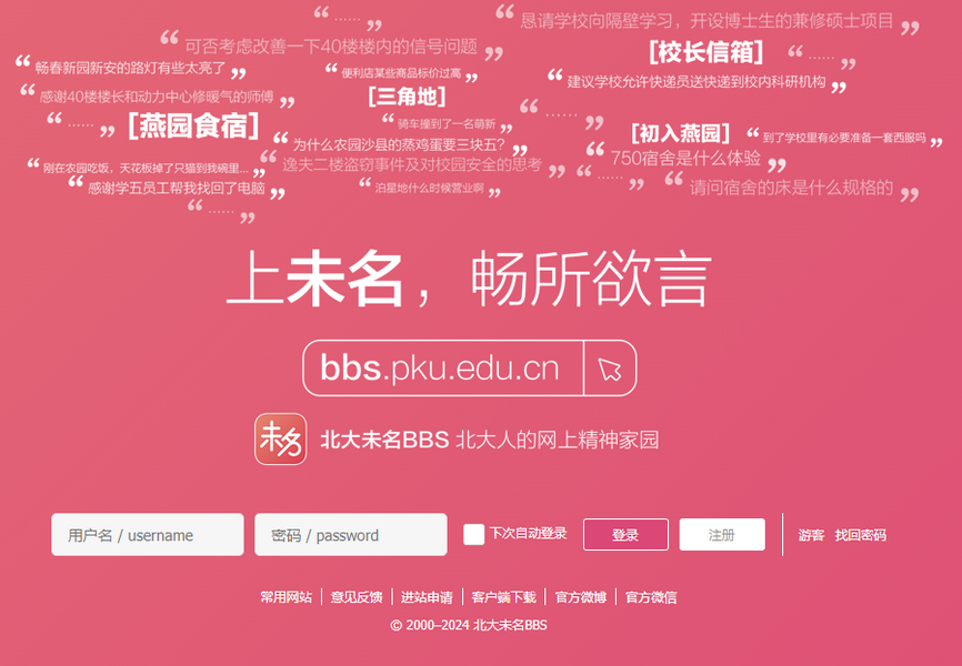 北大未名BBS創(chuàng)立于2000年,作為北京大學(xué)***的BBS論壇,是北大師生、校友日常交流的重要信息傳播載體和信息服務(wù)形式。
