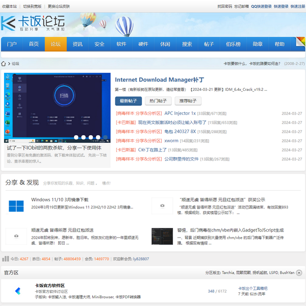 卡飯論壇是國內(nèi)最著名的軟件論壇,友善,熱情,開放的討論氛圍,首屈一指,打造國內(nèi)***的軟件交流平臺!