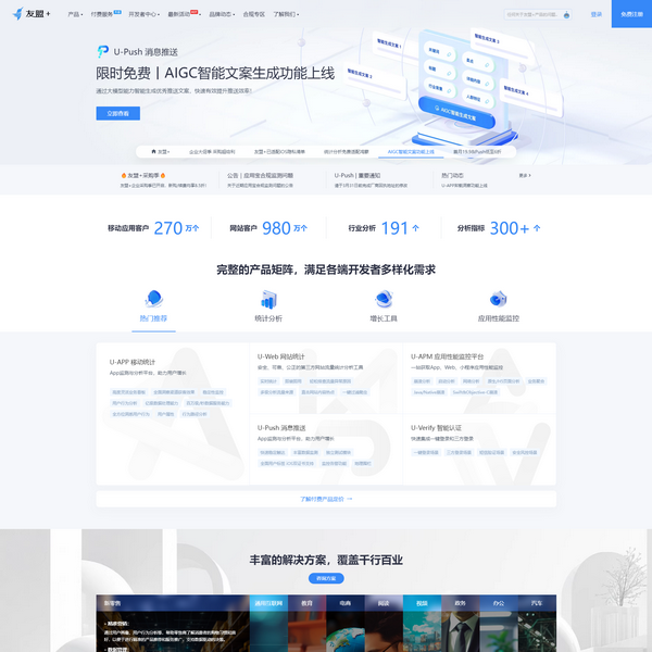 友盟+,國(guó)內(nèi)領(lǐng)先的第三方全域數(shù)據(jù)智能服務(wù)商。