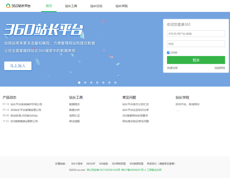 360站長(zhǎng)平臺(tái)是站長(zhǎng)與站長(zhǎng)之間,站長(zhǎng)與引擎之間交互的平臺(tái),更是服務(wù)用戶(hù)滿(mǎn)足搜索用戶(hù)需求的平臺(tái)。360搜索站站長(zhǎng)平臺(tái)將會(huì)成為站長(zhǎng)用戶(hù)了解和享受360站長(zhǎng)產(chǎn)品服務(wù)的一站式平臺(tái),將為站長(zhǎng)提供更為人性化的服務(wù)。