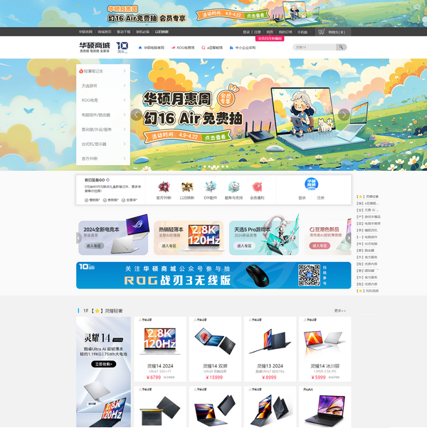 華碩商城是華碩官方直營商城,主營ROG電競系列,天選4,靈耀、a豆、無畏、proart等華碩好屏系列,臺式機、一體機及中小企業(yè)商用系列,主板、顯卡、顯示器、路由器等產(chǎn)品的在線購買及售后服務(wù)。