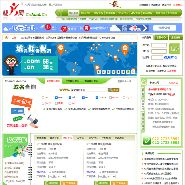 快網(wǎng)-中國專業(yè)域名注冊(cè)、虛擬主機(jī)服務(wù)商。提供虛擬主機(jī),域名注冊(cè),域名申請(qǐng),asp空間,網(wǎng)站空間,SQL空間,主機(jī)托管,主機(jī)租用,企業(yè)郵箱。虛擬主機(jī)首家支持中文域名綁定!中文域名首家支持全解析,空間域名類產(chǎn)品超強(qiáng)自主管理面板。