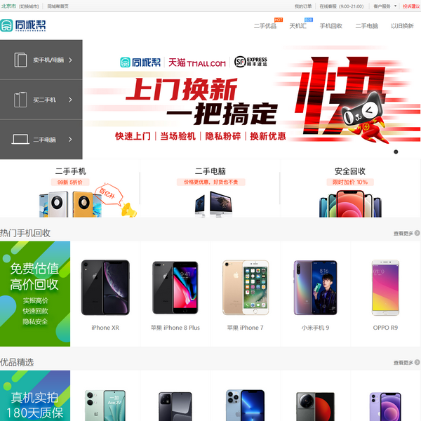 同城幫—為您提供優(yōu)質二手手機、手機回收、手機以舊換新、家電回收、上門回收,專業(yè)團隊質檢、隱私粉碎、ISO9001認證企業(yè)。支持上門、郵寄、到店等多種服務方式。