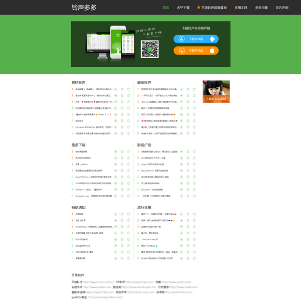 鈴聲多多是精美的鈴聲應用,涵蓋安卓、蘋果、pc三大平臺,覆蓋上億用戶!百萬免費鈴聲,輕松一鍵設置!鈴聲,彩鈴,短信,鬧鈴全都搞定。彩鈴榜單,鈴聲分類多多:流行金曲,影視熱曲,動漫游戲,短信鬧鈴,DJ舞曲,搞笑另類,網絡神曲,網友上傳等。