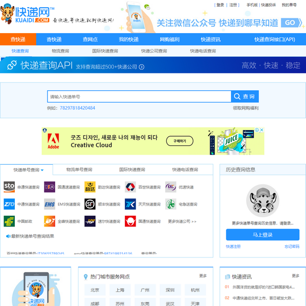 KuaiDi.com快遞網(wǎng)提供專業(yè)快遞查詢接口API,一鍵查詢順豐、申通、圓通、韻達(dá)、匯通、天天、德邦、中通、宅急送、快捷、信豐、郵政包裹、掛號(hào)信及EMS等常見物流單號(hào)!