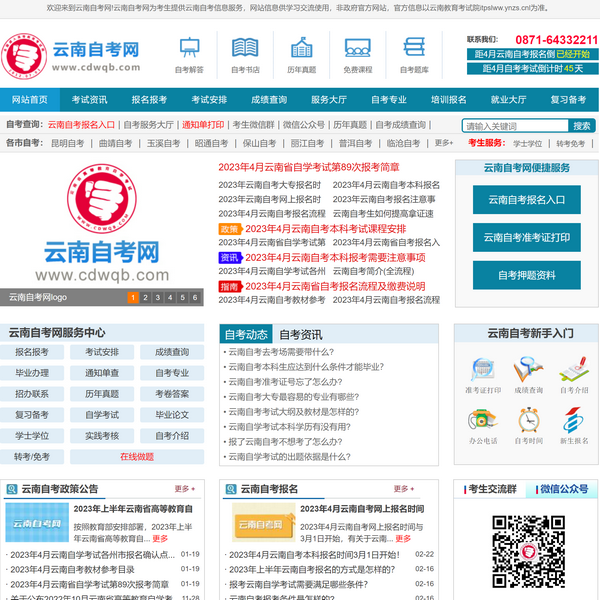 云南自考網是云南地區(qū)專業(yè)的自學考試資訊平臺,提供免費云南省自學考試管理系統(tǒng)服務和自考成績查詢系統(tǒng)服務...